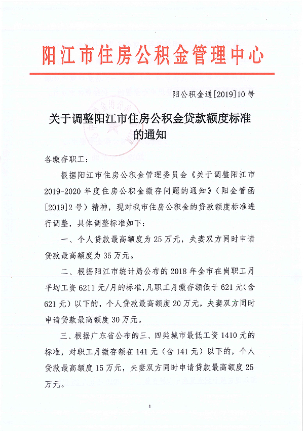關(guān)于調(diào)整陽江市住房公積金貸款額度標(biāo)準的通知